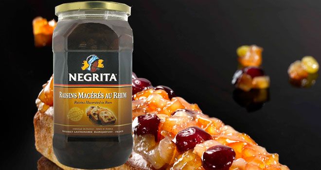Negrita, marque de Bardinet Gastronomie, propose des raisins macérés au rhum à intégrer à toutes vos préparations fraîches, crème glacée ou cake. Pour cela, la société a sélectionné les meilleurs raisins secs : des raisins sultanines. Originaires de la région d’Izmir (Turquie), ces raisins - de taille standard et d’une belle couleur blonde - sont exclusivement de qualité RTU (Ready To Use) soit équeutés et sans pépin pour une utilisation immédiate du produit.