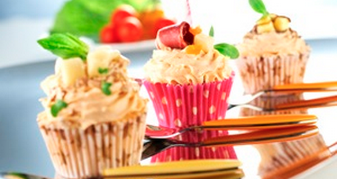 Procédé : Préchauffer le four à 170°C. Mélanger la farine, la levure, le sel et le poivre. Ajouter les œufs, le lait et le beurre, puis battez la préparation pendant environ 5 minutes. Ciseler le basilic et l’ajouter au mélange. Disposer des caissettes en papier dans des moules à muffins, puis y verser la pâte aux 3/4. Enfourner les cupcakes pour 25 minutes de cuisson, puis les laisser refroidir.