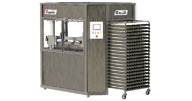 Merand Mecapâte innove avec ScariCool, une machine à scarifier les pâtons dans les filets avant la cuisson. Il suffit de verrouiller le chariot et ScariCool prend un par un les filets dans les chariots et les emmène sous la tête de coupe (droite ou oblique) avant de les remettre dans le chariot après la scarification. Gain de temps et confort assurés pour les utilisateurs ! Cette machine est idéale pour les boulangeries de taille moyenne car elle fonctionne sans robot et avec des lames de coupe standards. ➥ Hall 4 A 36.