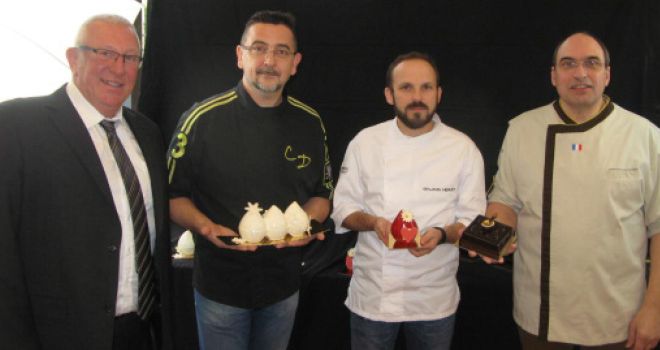 La fédération de la boulangerie-pâtisserie des Yvelines et Cacao Barry proposent trois nouveautés gustatives à réaliser pour la fin de l’année (Noël, Nouvel An) et la Saint-Valentin 2016. Selon les recettes, découvrez des recettes originales d’entremets au chocolat blanc ou chocolat noir, biscuit madeleine, croquant au miel, mousse aux poires, compotée de fruits rouges, brownies aux noisettes entières, etc.