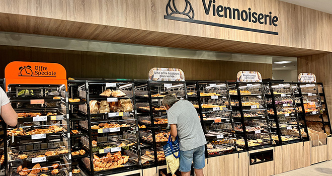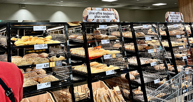En entrant, comme dans l'ensemble des unités rénovées ou créées selon les derniers concepts de l'enseigne, c'est le pain et la viennoiserie qui débutent le parcours client. En quelques années, le distributeur allemand a imposé ses codes à de nombreux autres enseignes, qui les adoptent progressivement : de vastes meubles où les produits sont disposés en libre-service, avec rechargement par l'arrière pour une parfaite fluidité dans le réassort.