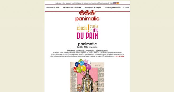 Pour être au courant de toute l'actualité de la société Panimatic, fabricant français de matériel pour la boulangerie-pâtisserie depuis 40 ans, n'hésitez pas à vous rendre sur son site internet www.panimatic.fr et à vous abonner à sa newsletter.