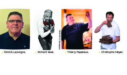 L’Académie française du chocolat et de la confiserie a accueilli 4 nouveaux académiciens. De gauche à droite : Patrick Lasseigne, chef chocolatier de la Chocolaterie Excellence Yves Thuriès à Marsac, Christophe Meyer pâtissier, chocolatier et glacier de la pâtisserie Christian à Strasbourg, Thierry Papereux, artisan chocolatier-confiseur à Montpellier et Richard Sève,