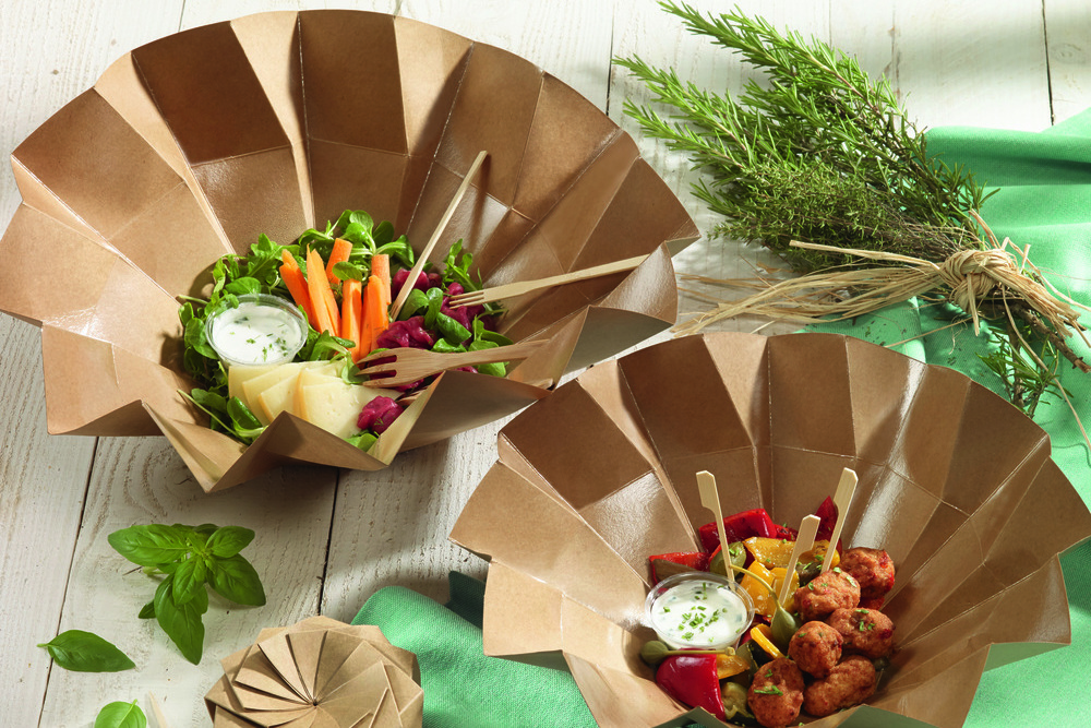 Autre outil pour se démarquer : miser sur des emballages aux formes atypiques, offrant au client final une expérience de dégustation premium. Solia (stand G6A36) présente la gamme Iris, réalisée à partir d’une feuille de carton étanche et prépliée sur douze facettes : pâtisseries, confiseries et en-cas sucrés comme salés bénéficient alors de cet aspect élégant, directement inspiré des origamis. Grâce à une distribution à plat et à une absence totale de colle, associés à l’utilisation de plus de 80 % de matériaux biosourcés et recyclables, les quatre formats de boîtes Iris sont aussi durables que raffinés.