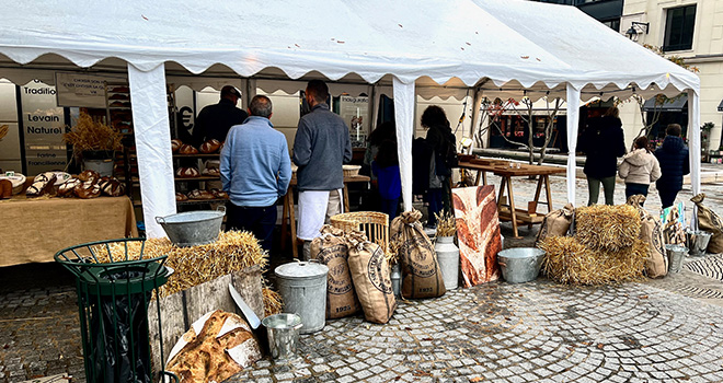 Ce samedi 15 octobre, la boulangerie du 1 place du Panorama à Clamart (92) était emplie d'une ambiance festive : cette boutique, placée depuis la rentrée sous l'enseigne l'Essentiel, contribue à faire vivre un environnement commercial dynamique (fromager, fleuriste, boucherie...) dans un quartier récent. Si l'opportunité a séduit le couple Bosson, ce n'était pas uniquement pour signer une 5è implantation et continuer de se développer. En sortant de Paris intra-muros, l'entreprise développe ici une relation différente avec la clientèle, en prenant le temps de lui expliquer les spécificités des produits et de la conseiller. Cette relation se crée dès le plus jeune âge, et l'artisan l'a bien compris : des ateliers étaient organisés devant la boutique pour permettre aux mitrons d'un jour de découvrir le travail de la pâte et les sensations qu'il procure. Deux démonstrateurs des Moulins Bourgeois participaient à l'animation en partageant leur savoir-faire avec le public.