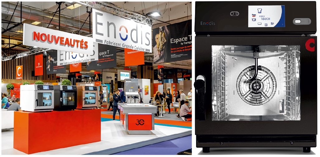 Enodis lance la nouvelle version de son four mixte mini Convotherm. Design Inox ou noir. Faible encombrement (four mixte le moins large du marché 51,5 cm). Facile d’utilisation. Nettoyage automatique (pas de contact avec le nettoyant lors du démarrage du processus de nettoyage). Modes de cuisson manuels et automatiques pour des processus de cuisson économes en temps et en énergie. Possible de rôtir, griller, cuire à la vapeur, gratiner, frire, cuire ou remettre en température avec un seul et même appareil sans surveillance. Possibilité d’alimentation monophasée. Version mini-mobile (en option) avec tiroir intégré d’eau et des eaux usées (aucune prise d’eau fixe nécessaire) permettant de fonctionner partout, même en modes vapeur et mixte. Ce four est doté du brevet Easy Start qui offre une cuisson automatique par niveau.