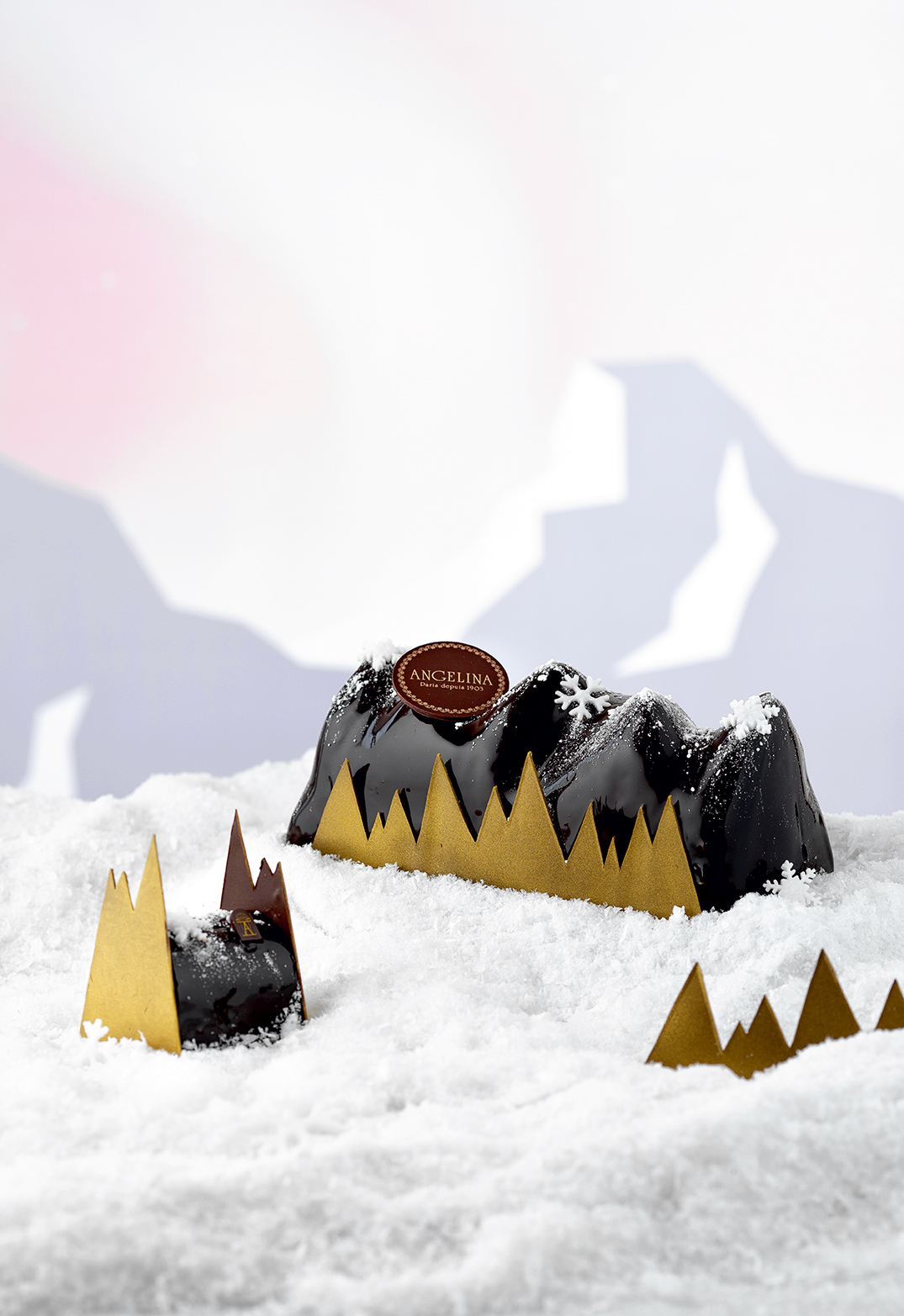 Chez Angelina, on cultive la magie de Noël ! Cette année, place à l’univers féerique du Noël polaire. La bûche « Boréale » des pâtissiers offre des notes prononcées de chocolat, un millefeuille croustillant noisette, un crémeux praliné, ainsi qu’un insert composé d’une compotée et zestes d’oranges à la fève de tonka. Cette création est un parfait équilibre des textures et des saveurs.