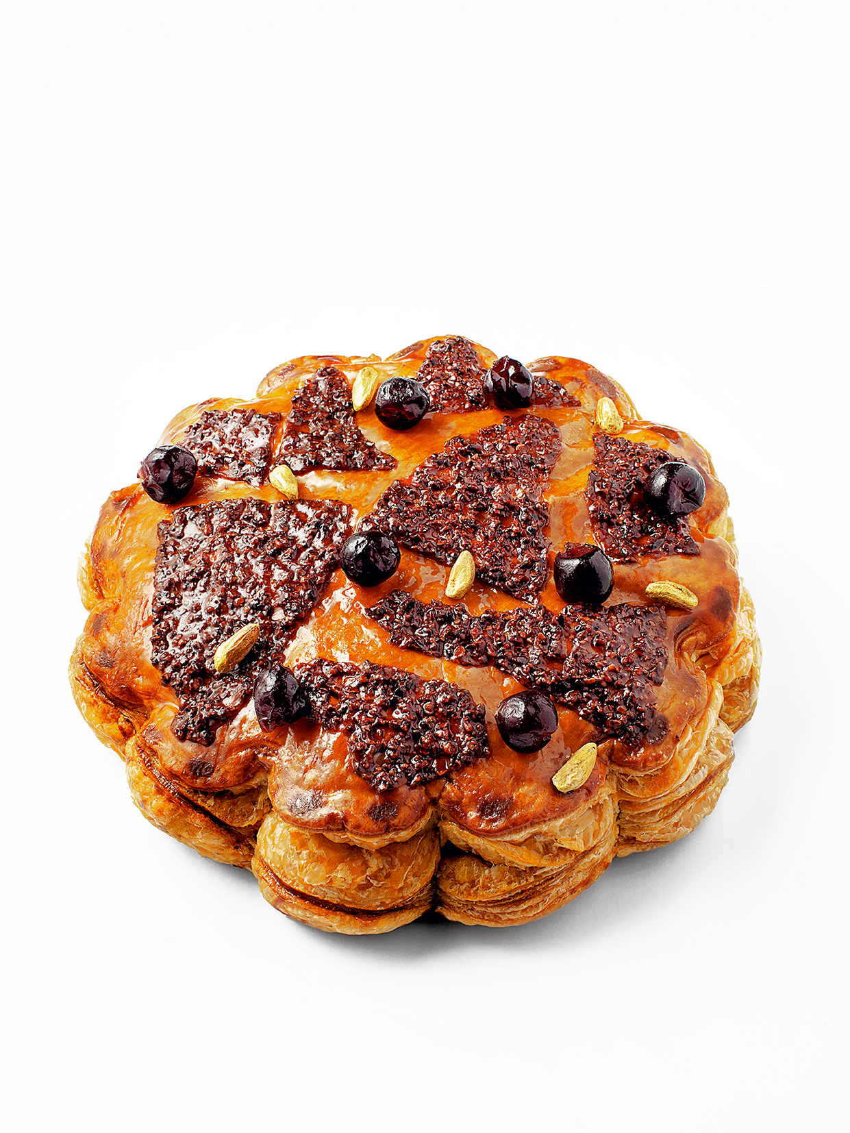 Nicolas Bernardé, Meilleur Ouvrier de France Pâtissier à La Garenne-Colombes (92), propose une galette des rois unique avec un feuilletage au beurre AOP d’Isigny, une crème d’amande à la pistache de Bronte, des cerises Amarena et des pépites de chocolat de Saint-Dominingue… Deux autres galettes : la galette classique au beurre AOP d’Isigny, renfermant une crème d’amande fondante, et la brioche des rois, une brioche aux zestes et morceaux d’agrumes confits imbibée d’un sirop à la fleur d’oranger et couronnée de fruits confits, d’anis étoilé et de bâtons de cannelle.