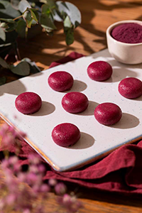La composition de TooFruit® Myrtille est simple : avec 89% de purée de myrtille, des fibres de pomme et des arômes naturels de myrtille, elle a de quoi séduire les amateurs de produits naturels et authentiques. C'est notamment le cas du Meilleur Ouvrier de France Chocolatier-Confiseur Vincent Durant, qui met en oeuvre ces poudres dans de nombreuses recettes. Confiseries, macarons, préparations à base de chocolat, crèmes pâtissières... autant de produits et d'essentiels de la création sucrée qui se pârent d'une intense couleur et de notes fruitées/acidulées. "La poudre Toofruit® est un excellent ingrédient qui favorise la cristallisation des fondants tout en permettant de réduire le dosage de la pulpe de fruit et de gagner du temps sur la cuisson.", témoigne Vincent Durant.
