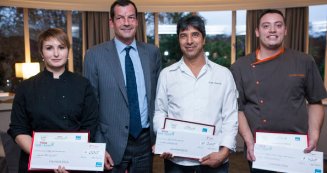 La finale du Prix « Goût et Santé MAAF Assurances » a réuni huit artisans au pavillon Élysée Lenôtre à Paris. Après plusieurs heures de délibérations, le jury a récompensé trois artisans venus d’Aquitaine, de Bourgogne et de la région Rhône-Alpes. 1er : Scott Serrato, traiteur à Urrugne (64), pour sa « Piperade de homard et jambon de porc basque, haricots plats et salade de roquette ». 2e : Xavier Jousserand, boulanger-pâtissier à Saint-Étienne, pour son « Croq’Velay » et 3e Lucie Jacquot, pâtissier à Paray-le-Monial pour son « Chokoponoix ». Passionné de pâtisserie, Xavier Jousserand a ouvert avec son oncle, le « Croq’en bouche », une boulangerie-pâtisserie à Saint-Étienne en 2012. Le « Croq’Velay » est une réponse aux attentes de tous les intolérants au gluten, au lactose et aux fruits à coque. Il s’agit d’un gâteau individuel créé à partir d’une association étonnante d’ingrédients : verveine, lentilles, chocolat noir et fraises. Ce dessert contribue au bien-être, à la lutte contre les allergies et à la préservation de la santé. La fraise, riche en antioxydant et en vitamine C, prévient des risques de cancer et de maladies cardiovasculaires. Les lentilles, riches en fer et en protéines, stabilisent le sucre et réduisent le cholestérol ainsi que les risques de maladies cardiaques. La verveine facilite la digestion et agit sur l’hypertension. En 2014, Xavier Jousserand a reçu également le premier prix du Concours de la Duchesse au chocolat revisité, au Salon du chocolat de Saint-Étienne.