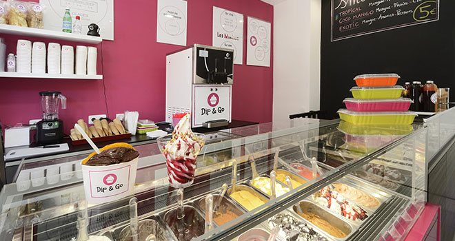« Chez Dip & Go, les glaces et sorbets sont turbinés le matin même de la livraison aux professionnels (artisans boulangers, pâtissiers, restaurateurs, etc.) afin de garantir une fraîcheur et une onctuosité incomparable, une saveur totalement naturelle. Les recettes sont volontairement peu sucrées et la technique à l’italienne garantit une faible teneur en matières grasses », explique Christine Champault qui a équipé ses boutiques de matériel Gel Matic. « J’ai connu la marque sur un salon professionnel, mais elle m’était déjà familière, du fait de sa bonne réputation. Nous avons acheté des machines à glace soft (2 parfums) et avons recommandé la marque à nos clients professionnels. Les machines sont robustes tout en restant élégantes : elles s’intègrent à tous les décors. Nous avons bénéficié d’une assistance du début à la fin, qu’il s’agisse de la préparation des connexions, arrivées électriques et eau, etc. jusqu’à la mise en route et la formation. Le service après-vente assuré par Christophe Lambert est précieux et efficace. Il est toujours disponible et à l’écoute. Nous n’avons pas eu de souci avec nos machines mais parfois quelques interrogations ou le besoin de comprendre certains messages ou une façon de faire qui serait meilleure qu’une autre… Nous avons toujours eu une réponse immédiate de Gel Matic aux questions posées ».