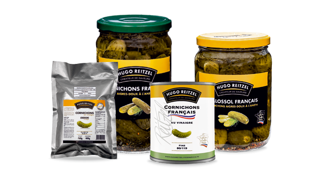 Le food service représente 25 % du CA de la société Reitzel. Parmi la gamme proposée aux artisans, on trouve les cornichons 80 + au vinaigre. Avec son ouverture facile, cette boîte 4/4 propose des cornichons fins (calibre standard) et croquants, une recette terroir aromatisée à l’estragon. On trouve également les cornichons 40 + aigres-doux aneth, en bocal de 72 cl. « Une recette délicatement parfumée à l’aneth, idéale en garniture de sandwich et de burger. » Quant aux cornichons malossols aigres-doux aneth (20 + en bocal 85 cl), ce sont de gros cornichons français qui bénéficient de l’appellation « malossol » du fait de leur calibre 20 + (recette douce en édition limitée).