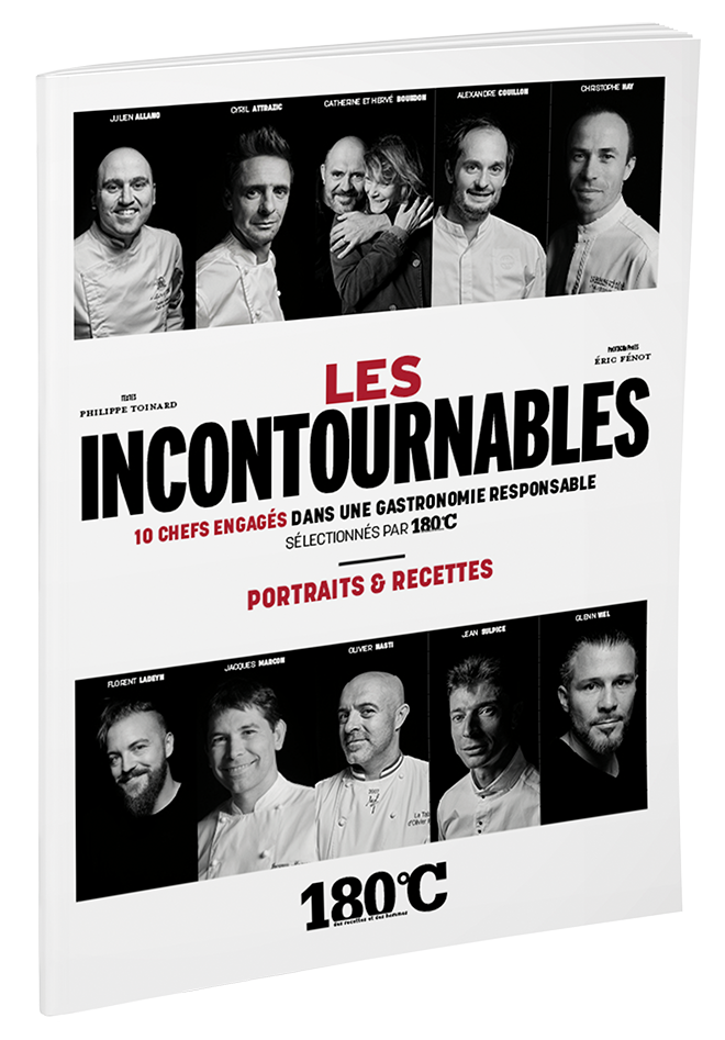Des Hauts-de-France à la Provence, de l’Alsace à la Bretagne, cet ouvrage de 216 pages propose la rencontre de dix chefs emblématiques de la gastronomie responsable. Chefs étoilés ou simplement appréciés pour la justesse de leur cuisine, ils sont les garants d’une cuisine respectueuse et engagée, en totale adéquation avec leur environnement. L’équipe de 180 °C les a rencontrés dans toute la France. Entre portraits et recettes, ces dix incontournables livrent leur vision de la gastronomie de demain. Au-delà du plaisir de bien manger, ces professionnels proposent des plats « signature » qui prennent en compte les dérèglements climatiques qui remettent en question les modes d’alimentation actuels.