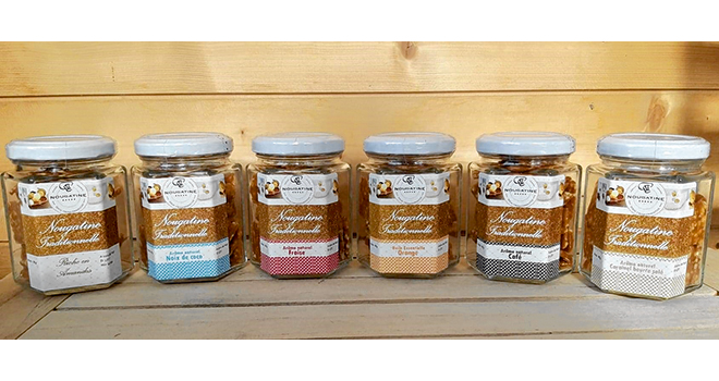 Idéal Croquembouche, le spécialiste de la nougatine en France propose une délicieuse nougatine traditionnelle cuite au chaudron de cuivre. Offre découverte : trois parfums achetés, le quatrième offert. Sachet de brisures de nougatine (140 g) et pot en verre de carrés de nougatine (90 g). Arômes naturels de café, de noix de coco, de fraise, de caramel beurre salé, d'huile essentielle orange et recette traditionnelle. Dans les pots en verre, il est également proposé différents produits : pastilles pour décors gâteaux, petits cœurs de 30 mm, petits œufs de 31 mm (Pâques) et étoiles (Noël).