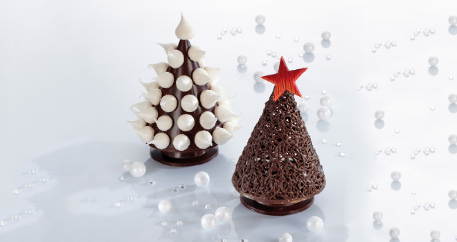 À Noël, le chocolat sera encore le parfum préféré des consommateurs. Face à cette demande, Belcolade a développé un moule exclusif en forme de cabosse qui vous permettra de mettre en avant le cacao à l’origine du chocolat. Ce kit se compose de quatre moules entiers autoportants, permettant de réaliser entremets, glaces ou bonbonnières en chocolat. Fabriqués par Pavoni®, ces moules thermoformés sont résistants et réutilisables. Chaque cabosse mesure 20 x 6,5 cm de diamètre. Ils apportent une forme originale à vos entremets ou bonbonnières de chocolat. Autre nouveauté pour Noël ! Un centre de table original pour sublimer le repas de Noël de vos clients ou tout simplement en décor de vitrine. Ce moule Belcolade permet de réaliser des sapins en chocolat. Le kit se compose de quatre moules Pavoni® thermoformés, résistants et réutilisables. Chaque sapin mesure 16 x 10, 5 cm de diamètre.