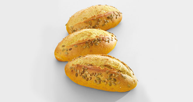 Puratos propose de fabriquer Créa’plus Samba dans la gamme « 10 pains 1 pétrin », un petit pain à base de graines de courge, noix de coco, curcuma, paprika, cumin, épices et levain de seigle pour donner un goût original avec des notes de curry et de colombo Créole. Un produit facile à utiliser avec un dosage à 5 % du poids de pâte. Mie fondante et colorée. Idées de recettes : en tartines ou demi-baguettes pour les sandwichs, en fougasse pour l’apéritif ou en pain de mie. Conditionnement en sac de 2 kg.