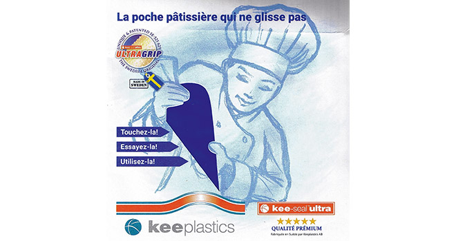 Essayez la nouvelle poche de Keeplastics fabriquée en Suède. Voici enfin une poche pâtissière qui ne glisse pas ! Pour éviter tout risque de contamination, utilisez chaque jour les nouvelles poches Kee-seal Ultra. Plus d’infos sur www.keeplastics.se