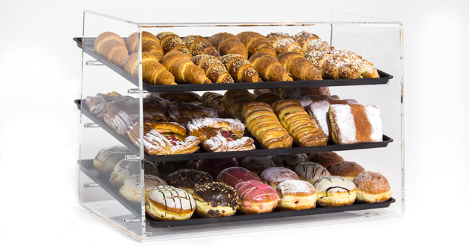 Savez-vous qu’un présentoir peut générer jusqu’à 40 % de chiffres d’affaires en plus ? La société FMU a installé ce présentoir 3 étages garni de viennoiseries pendant une semaine devant la caisse puis a été retiré pendant une semaine et ceci en alternance plusieurs fois. Pendant la période où le présentoir était bien en évidence sur le comptoir, les ventes ont progressé de 20 à 40 %. De ce fait, un présentoir s’amorti sur une courte durée.