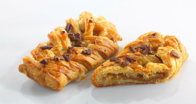 Équivalent danois de notre croissant français, la tresse aux noix de pécan de CSM France est une viennoiserie pré-poussée (95 g) avec fourrage au sirop d’érable et feuilletage à base de margarine. Décoré d’éclats de noix de pécan, cet encas se veut aussi beau que bon puisque la touche finale est apportée par un sirop d’érable, au léger goût caramélisé, à déposer sur les tresses chaudes par l’artisan (poche fournie). Cette recette nordique originale permet d’apporter de la nouveauté en vitrine et de susciter l’achat spontané, à l’heure du petit-déjeuner ou du goûter ! Conservation optimisée puisque l’emballage comprend 4 poches de 12 pièces. Produit distribué via le réseau Back Europ France.
