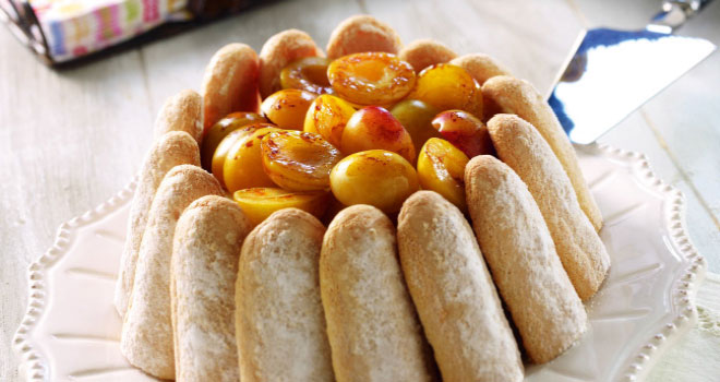 Prévoyez quelques mirabelles poêlées pour décorer le dessus de la charlotte.