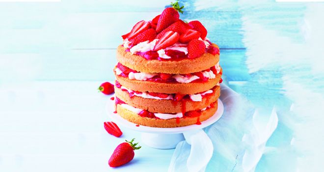 ❙ Biscuits : préchauffer le four à 180 °C. Mettre les œufs et le sucre dans le bol d’un batteur et fouetter pendant 12 minutes pour obtenir un mélange gonflé et épais. Tamiser la farine et la fécule de maïs au-dessus du bol et les incorporer délicatement à la spatule. Beurrer et fariner deux moules ronds de 20 cm de diamètre, répartir la préparation entre les moules, lisser le dessus et enfourner pendant 20 minutes. Laisser légèrement tiédir avant de démouler sur une grille. Laisser complètement refroidir.